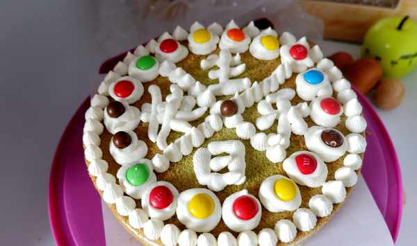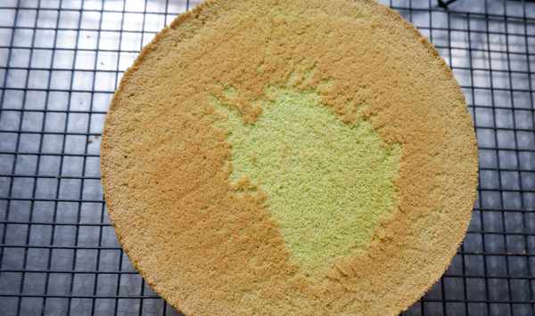 配方:雞蛋5個,菠菜汁100克,蛋糕粉100克,白糖40克,玉米油30克。淡奶油250克,白糖10克。