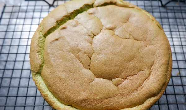 十四、蛋糕出爐後把蛋糕模具倒扣在烤網上,待到蛋糕涼透後脫模。