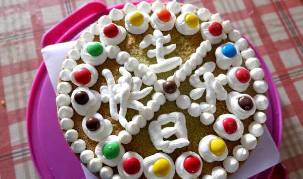 十九、把裱花袋中的淡奶油按照自己的喜好擠在蛋糕的表面。
