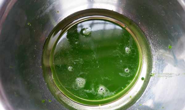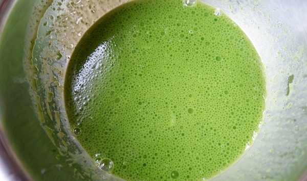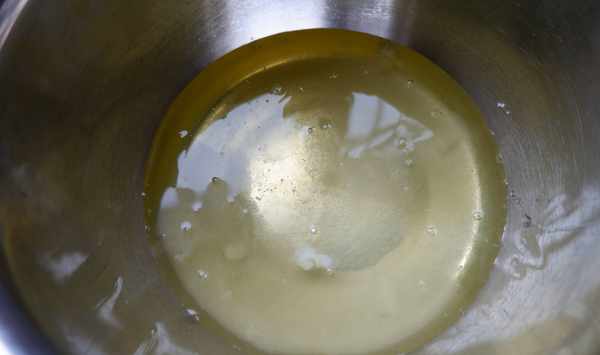 第二、把30克的玉米油中加入100克的菠菜汁和10克的白糖。