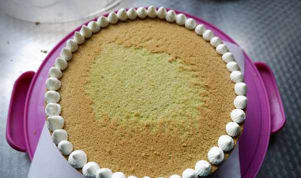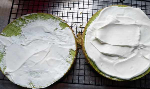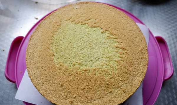十八、把兩片蛋糕扣在一起。