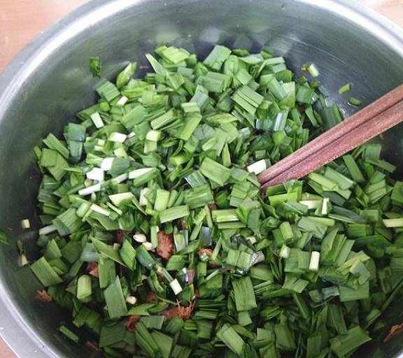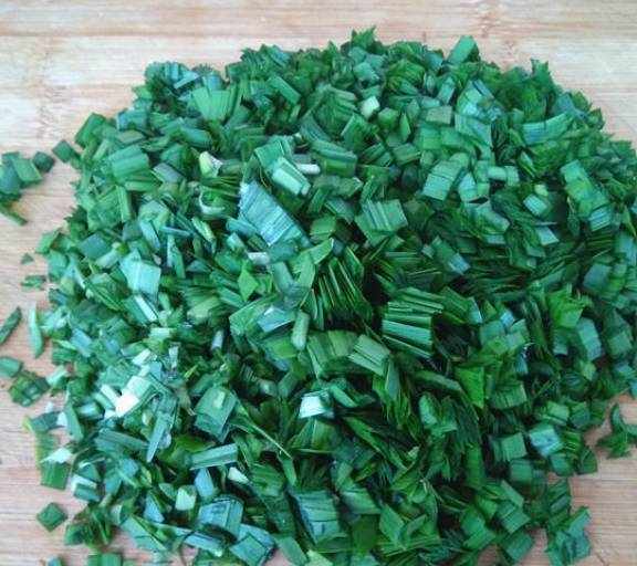 第4步、韭菜摘洗幹凈用冷水浸泡20分鐘,撈出瀝幹水切碎。