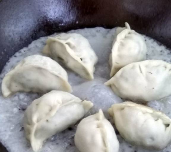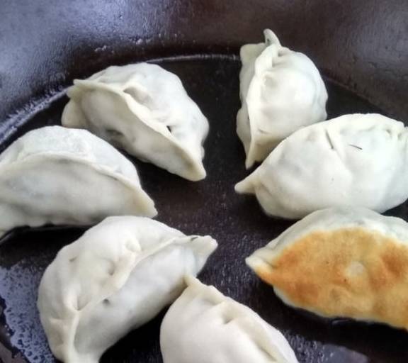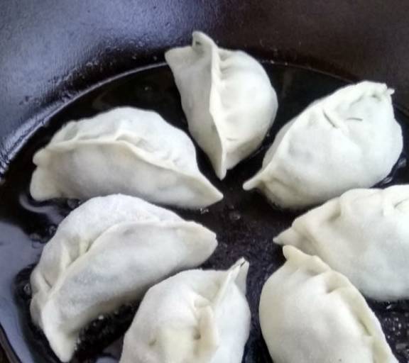 第10步、不粘鍋加少許油,煎餃入鍋煎。
