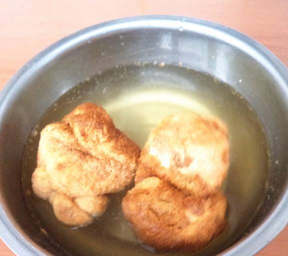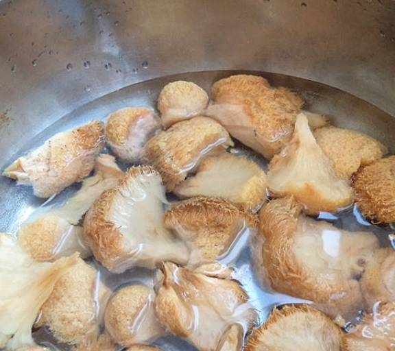 第1步、猴頭菇用冷水浸泡,其間適時更換水。