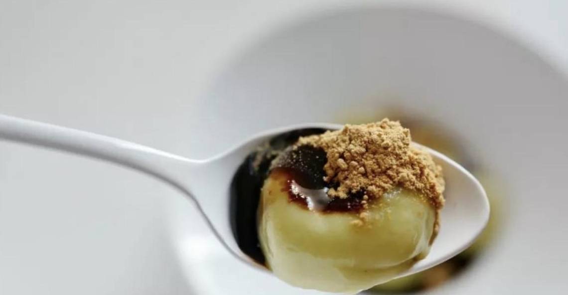 在這個期間你可以還是著手熬紅糖汁,將紅糖和水混合後在爐子上加熱做成糖漿狀備用,然後將煮好的牛油果小團子撈出放入提前準備好的涼水中放涼降溫,這個步驟不僅能維持它的外形,還能讓它的口感變得更加的Q彈軟滑,最後淋如熬好的紅糖汁,再撒點黃豆粉,整個牛油果小團子就大功告成瞭。