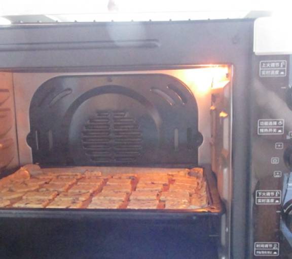 第13步、烤箱上火125度,下火120度,預熱完成後入烤箱烤35分鐘。我用的低溫長時間烘烤,這樣即不會烤糊,也能保證烤好的餅幹酥脆。