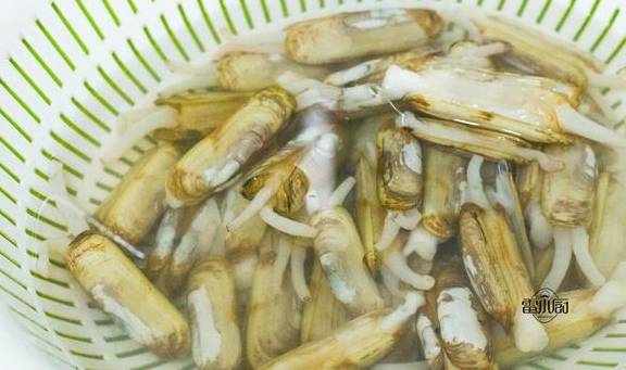 1、蟶子買回之後,加一勺食鹽,先浸泡兩小時,期間可以換一次水,這樣更幹凈。