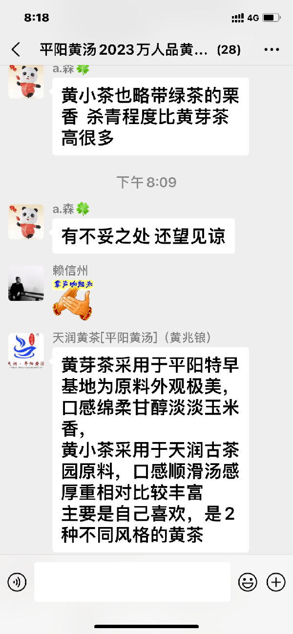 各活動點品鑒後,通過微信群向主辦方反饋意見,提供品鑒心得;主辦方及時、認真地與茶友們進行交流、講解。