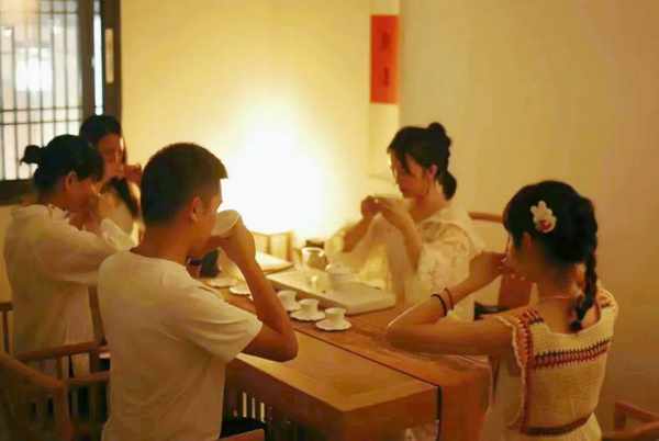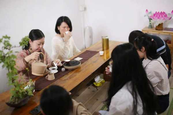 上海市半掬齋茶空間。充分發揮地域優勢,吸引瞭外國朋友前來品飲
