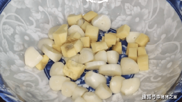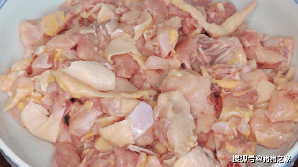 1.準備半隻三黃雞,把雞肉剁成小一點的塊,剁好後放入盆中,加入一小把面粉抓拌均勻,讓每一塊雞肉都能均勻地裹上面粉。用面粉來抓洗雞肉,可以把雞肉裡面的血水和雜質清洗得更加幹凈,抓至雞肉有一點粘手後開始用清水沖洗,盡量多清洗幾遍,洗到雞塊中的水變得清澈,然後把雞塊撈出來控幹水分。