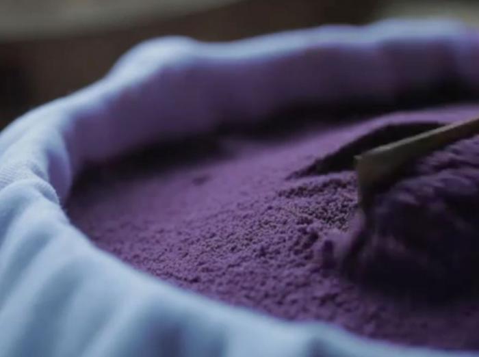 紫米和黑米的區別就是,紫米是糯米,黑米是粳米,所以下麵李子柒的這道美食用到了紫米和黑米,上圖是過篩的紫米粉。