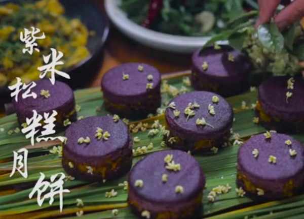 用紫米做成的紫米松糕月餅,是蒸制而成,上面的朵朵桂花更是好看喜人。網友都說:這樣的月餅來一筐也不膩。