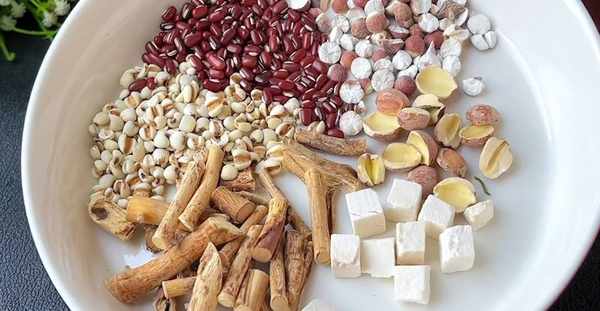 1、準備五指毛桃,土茯苓,紅蓮子,芡實,薏米仁,赤小豆,把它們放入清水裡清洗一下,洗去灰塵和臟東西,洗幹凈,把水倒掉,再倒入幹凈的清水浸泡20分鐘。