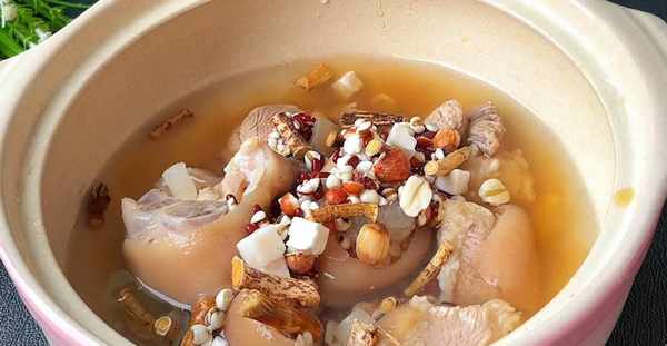4、時間到打開蓋子,再加鹽和雞精調味,不喜歡雞精的可以不放。這樣具有福建特色的五指毛桃豬蹄湯就燉好瞭,湯鮮味美,還有濃鬱的椰子的香味,既營養又好喝。