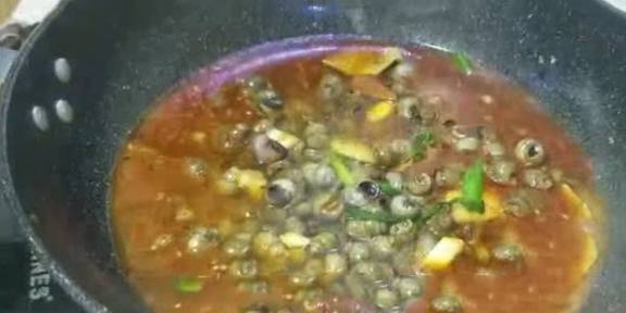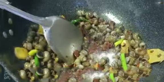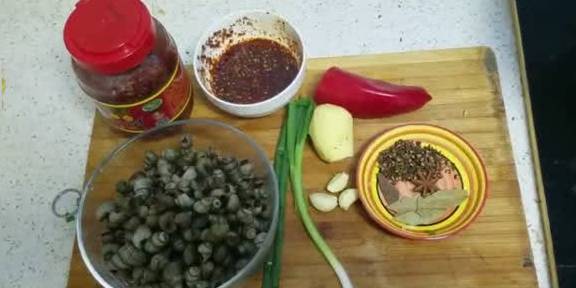 食材配料:蔥1根、花椒5克、桂皮半片、香葉2-3片、八角1粒、豆瓣醬、辣醬油、生薑、紅椒、大蒜3瓣,生抽、老抽、味精、料酒、田螺。