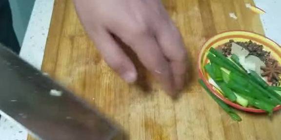2、先來處理配料,蔥切小段,生薑切片,大蒜拍碎,裝盤備用。這些都是辛辣的食材,本身殺菌效果就極佳。