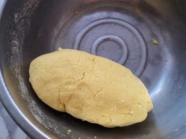 第一步:玉米麵300克,用開水60克開水燙一下,邊燙邊攪拌,然後再加入適量的冷水攪拌成團。玉米麵營養很豐富,含有豐富的卵磷脂,蛋白質、維他命E、硒、胡蘿蔔素、鈣、鐵、鋅等多種維他命及礦物元素。而玉米麵中有一種叫谷氨酸的物質,可以促進大腦智力發育。除了谷氨酸,還富含大量維他命和脂肪酸等有益於寶寶生長發育營養物質,在促進大腦智力發育的同時,還能起到健腦功能。玉米麵中豐富的纖維素也不容忽視,不但可以刺激胃腸蠕動,改善便秘,還可以促進膽固醇的代謝,加速腸內毒素的排出。不但是中老年人必吃的粗糧,也是孩子們要多吃的粗糧。