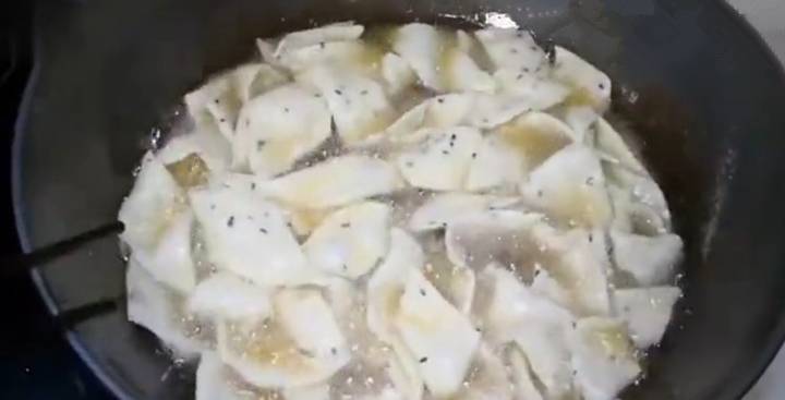 6、起鍋放油,油熱至6成放入面塊,邊炸邊用筷子攪拌翻勻,註意炸的時候不要用大火,用中小火適宜;