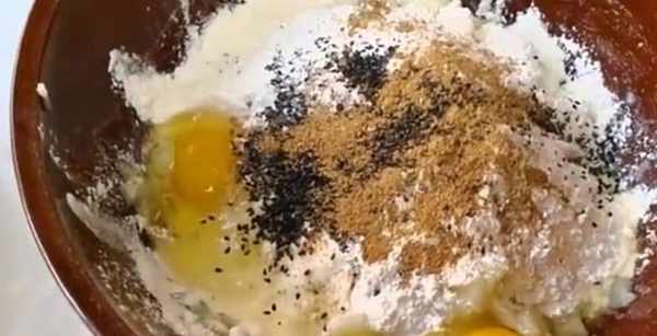 3、將蒸熟的土豆片搗成土豆泥,再放入適量的面粉,打入兩個雞蛋攪散,接著放入一些黑芝麻、麻椒粉;