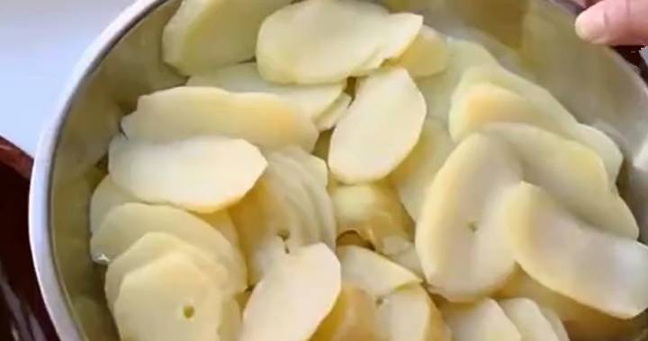 2、將土豆去皮洗幹凈,切成土豆片,然後上鍋蒸熟;