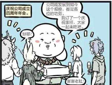 公司成立就要四周年瞭,老肚為瞭慶祝公司成立四周年,決定舉辦一場慶祝公司成立的四周年年會。在年會上,老肚說:公司能發展到如今這個規模,都是各位的功勞。我訂瞭一個慶祝蛋糕,大傢一起吃吧。老肚說完,大傢都紛紛答應並感謝。老肚打開裝蛋糕的盒子,問誰來切第一刀?又說要不讓九月來吧。九月連連謝絕說:不不不,我不太合適吧,還是老板您先……