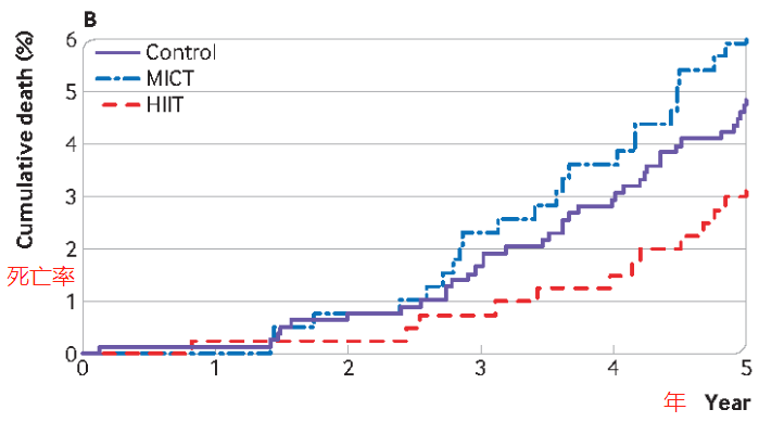 《英國醫學雜志》上有一項研究,將1500餘名老人分為了3組,分別為高强度運動組、中等强度運動組和對照組,在5年間進行不同强度的訓練。研究者經過追跡分析3組老人的身體機能後,發現進行高强度訓練的老人無論在心理狀態,還是生理狀態,都比其他兩組好,死亡率也最低。