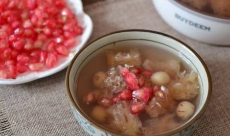 5,約30分鐘後加入冰糖和石榴,小火慢燉5~10分鐘即可。