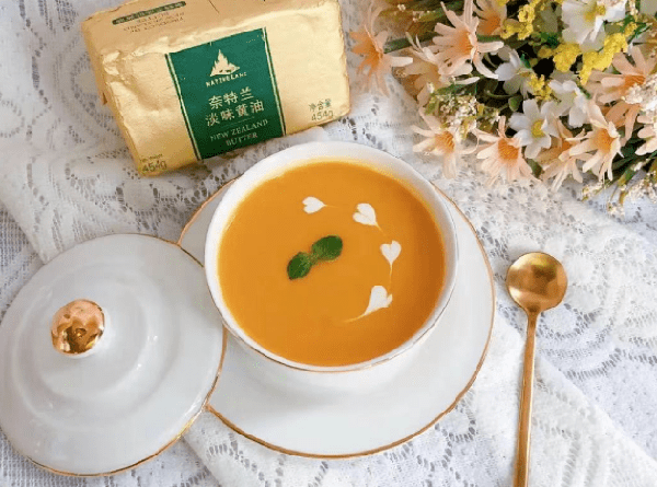 @陳米開:西餐廳裏的南瓜濃湯,在家也能輕鬆搞定,美味的不止入口細膩順滑,味道濃郁,加入奈特蘭黃油,口感也更顯層次~
