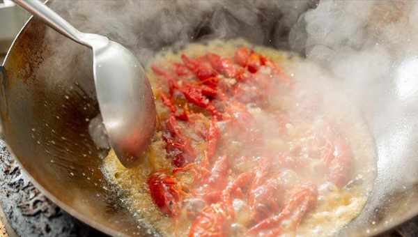 將去蝦仁的小龍蝦放入鍋中打發至金黃色撈出備用,鍋中放食用油,加入蒜片、薑片炒香,加入豆瓣醬、火鍋底料炒香低熱量無氣味。