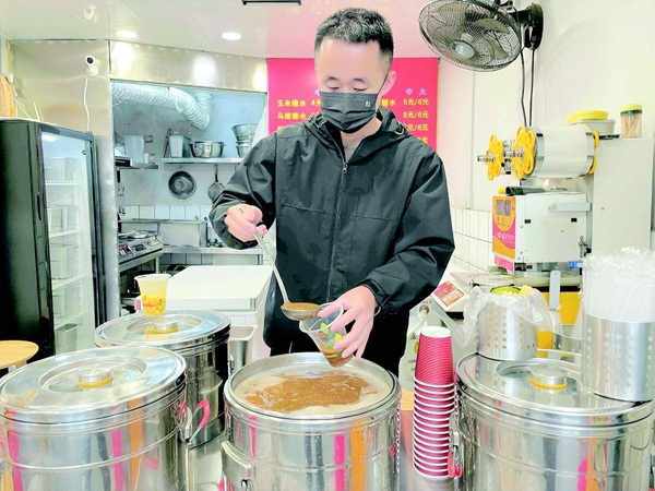 溫環隆的糖水店生意很不錯,尤其到飯點的時候,店門口經常排起長龍。溫環隆告訴記者,夏季是糖水銷售的旺季,最高時一天能賣出400多杯,營業額做到2000多元。粗略算一下,店裡一月能賣出萬杯糖水。