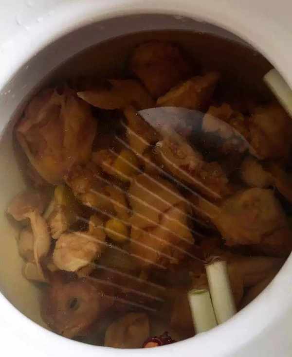4、加水沒過雞塊至鍋的上半部分