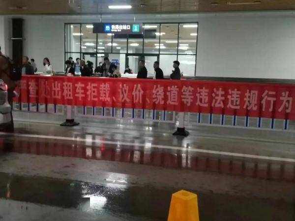從淄博北站出站,一直到公交車、出租車、停車場,都有志願者在引導遊客。