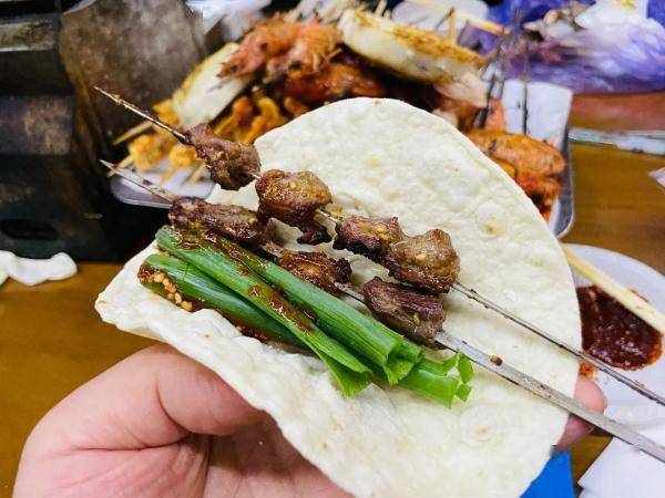 一桌一爐一卷餅,小串小蔥小蘸料。食材新鮮,風味獨特,分量十足,葷素應有盡有。在食客心中,最在意的還是淄博燒烤的美味與實惠——肉串分1元、1.5元、2元、2.5元、3元不等,小餅每包3至4元,小蔥、小醬加蘸料3至5元,人均消費四五十元就能吃飽吃好。