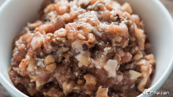 2、倒出來後加入蠔油,生抽,鹽,黑胡椒,蔥,蛋清和少許淀粉,順著一個方向攪拌均勻,將肉餡打上勁兒就可以瞭。