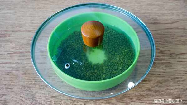 2、再燒水,鍋裡的水煮沸以後直接倒入綠豆,然後蓋上蓋子燜15分鐘,15分鐘以後再把綠豆放涼;