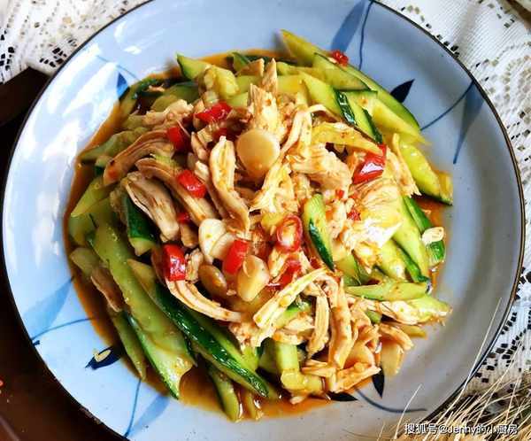最後將黃瓜、雞胸肉、料汁放在一起,攪拌均勻即可食用。