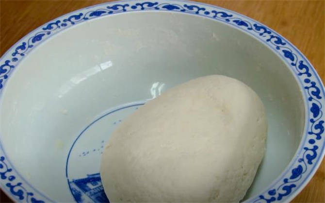 1.先需要準備一斤普通面粉,加5g鹽增加面粉的筋性,順便做一個簡單的調味,先用150毫升的熱水和面,然後再用170毫升的溫水和面,攪拌成大面絮的狀態,下手揉成一個光滑柔軟的面團,密封餳面至少要40分鐘。