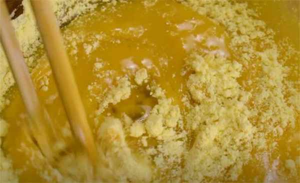 2.下面我們來做油酥,這個是起層的關鍵,但是普通面粉用來做油酥太油瞭,我們就用30g的玉米面來代替面粉,加食用油30g,鹽2g攪勻。