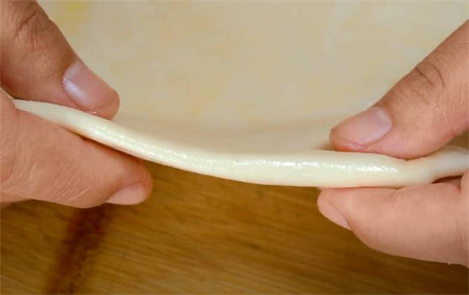 7.都做好之後我們取出第一個做好的餅胚,按扁壓平,均勻的溫柔的用力,搟成一張有厚度的餅皮,就像這樣。
