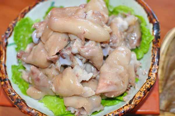 阜南縣龍門客棧農傢樂借鑒做雞腳的做法,經過十多年的探索,逐漸形成瞭爛豬蹄的鹵制方法。該菜肴符合阜南人淳樸豪放的性格特點。