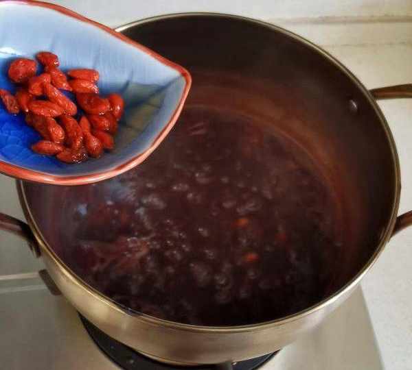 第5步、等粥煮的慢慢濃稠時將枸杞放進去煮5分鐘。