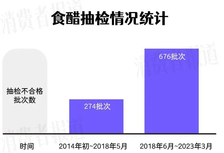 2018年,《消費者報道》曾就食醋的抽檢情況進行過統計,2014年初至2018年5月,原國傢及省級食品藥品監督管理局抽檢發現不合格食醋274批次。