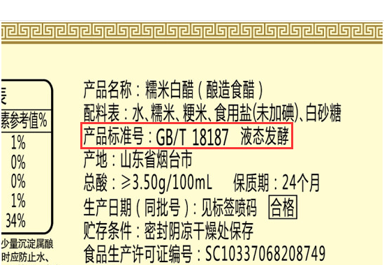 其中,山西老陳醋、江蘇鎮江香醋、福建永春老醋都是國傢地理標準產品,因此也有特定的執行標準。消費者想要買到正宗的“名醋”,可以關註一下產品包裝上的標準號。永春老醋是GB/T 26531, 山西老陳醋是GB/T 19777,鎮江香醋是GB/T 18623。