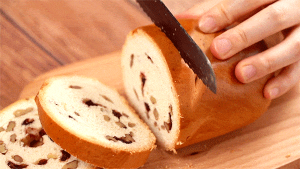 不需要用專門的面包刀來切,隨便用啥刀都能切得幹幹凈凈不拖泥帶水,不會到處掉渣。小廚房隨便拿瞭把刀,手起刀落,大列巴切片邊緣整整齊齊,整個過程十分舒爽。