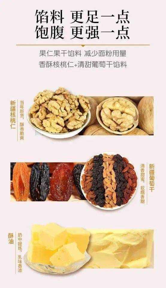 果仁含量≥30%,餡料 更足一點、飽腹更強一點