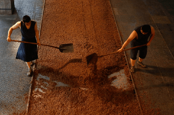 手工班釀造車間,工人正在出甄降溫,儲永志/攝