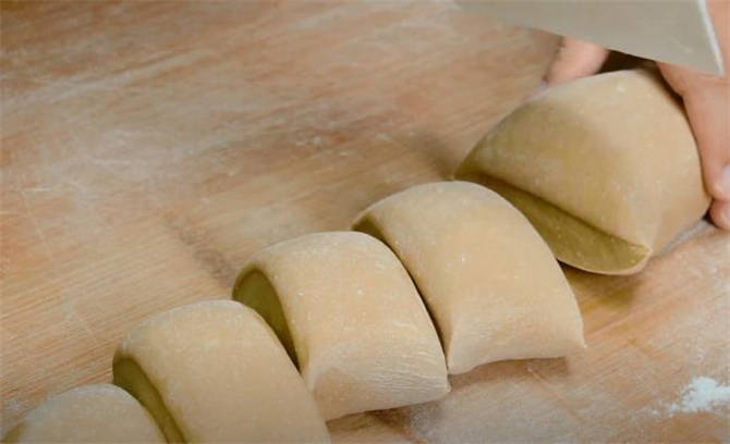 3.面團發酵好之後先排氣,揉好之後整理成長筒,再切成小劑子。
