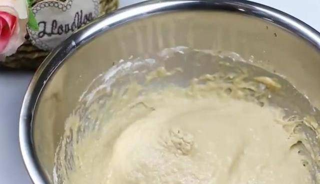 首先準備70克紅糖加220克開水融化,然後再準備250克面粉放三克酵母粉,加入紅糖水給它攪成面糊,攪成黏稠無顆粒就可以瞭,封上保鮮膜醒發至兩倍大,大約發至兩個小時裡面全部是這樣的氣泡就可以瞭。