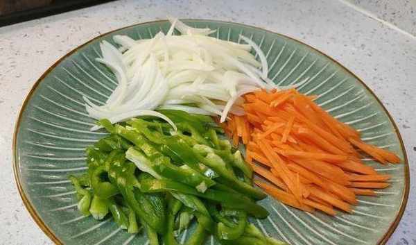 第1步:這是要使用的添加劑的制備。較低的成分處理得很好。洋蔥去皮並切成薄片。胡蘿卜洗凈去皮,切成薄片。電線備用。(做普林面時不需要用到這些材料,可以根據自己的喜好隨意搭配自己喜歡的材料)