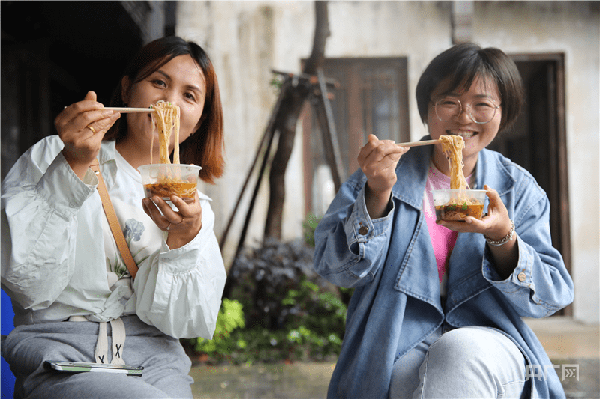 同樣,泥鰍掛面展位前也是人來人往,“大傢都誇味道好。”展位負責人、竹塘社區“兩委”朱婷婷自豪地告訴記者。泥鰍掛面,關鍵在“面”。這裡的“面”是登上“舌尖上的中國”的竹塘掛面。